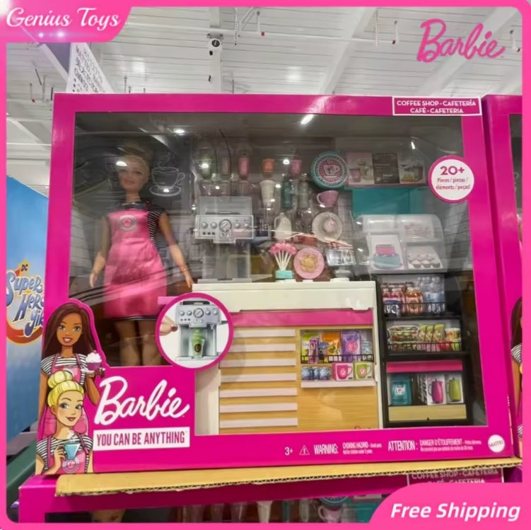Mattel Barbie Doll Dessert House Coffee Shop Set Funny Professional Rich Accessories Career Experience Toy Girls Birthday Gift