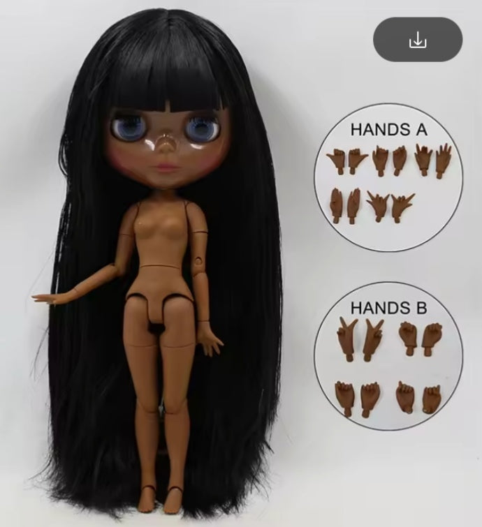 ICY DBS blyth doll super black skin joint body shiny face 30cm anime nude doll toy doll girls gift African American skin tone