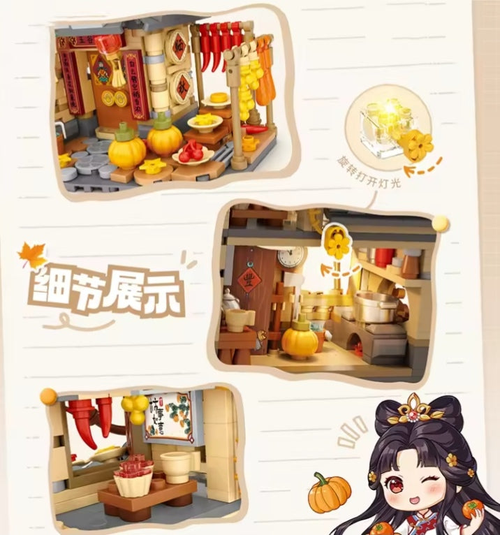 Children's Autumn Harvest Cottage Farm Pumpkin House Building Blocks Set Toys (without box) tys bbs