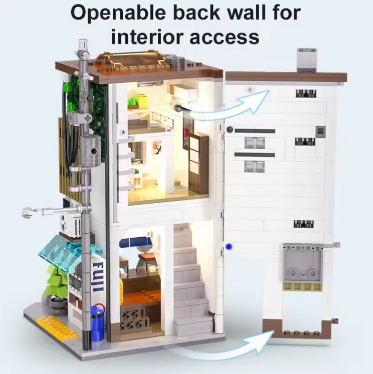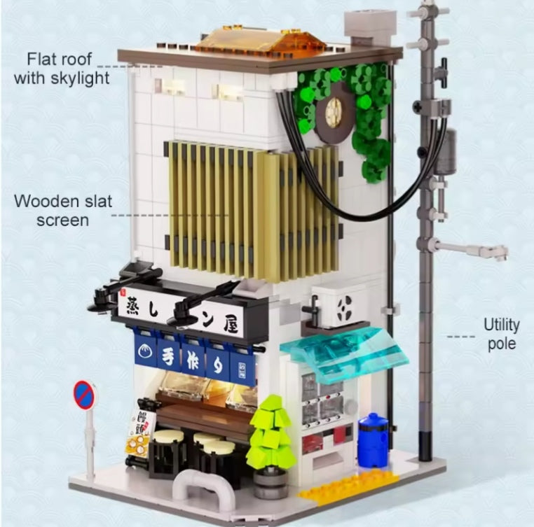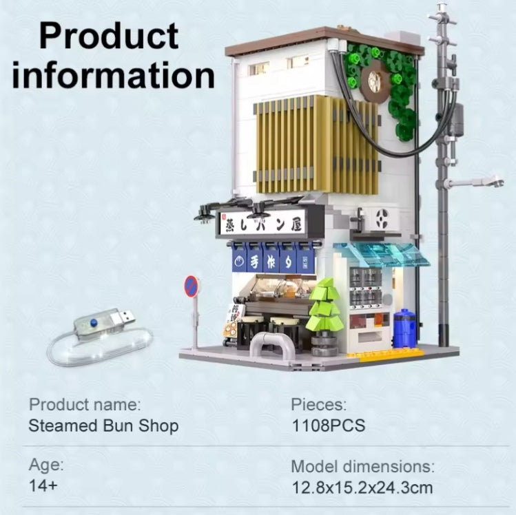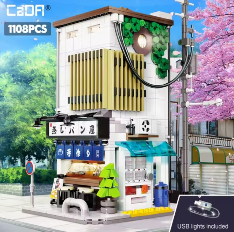 1108 Pcs Cada City LED Japanese Steamed Bun House Architecture Building Blocks Friends Shop Figures Bricks Toys for Kids Gifts